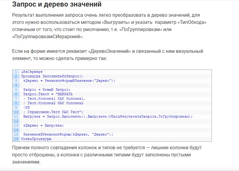(3) Создал реквизит формы с типом "Дерево значений", без колонок. Поместил его на форму. Т.к. колонки не указаны, реквизит на форме не отображается. В коде прописал как указано в