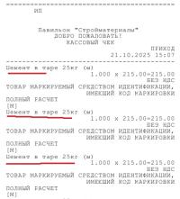 Также рекомендуем в чеке передавать не более 50-60 маркируемых товаров, в связи с ограничениями фискального накопителя."