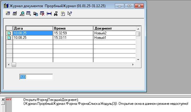 сообщением "Открытие окна в данном режиме недоступно!"